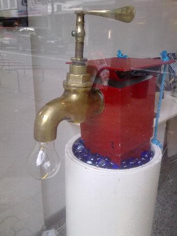 der sich dann doch noch geradlinig seinen Weg nach oben sucht und in einem aus Craqueleeglas erdballähnlichen Kugel seine Bestimmung findet.