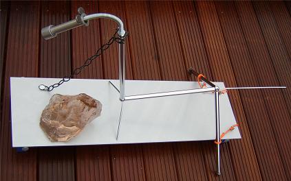 Grundplatte: mit geschliffenen Spiegeln auf runder Massivholzplatte gelagert/