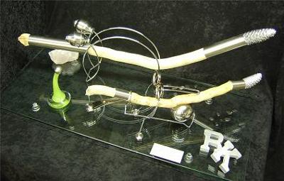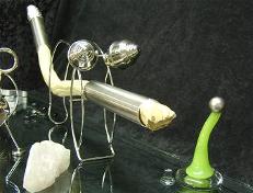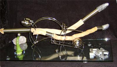 Edelstahlrohren verflanscht / Rute versilberter Tannenzapfen /