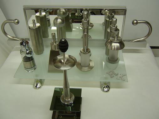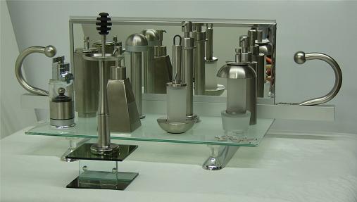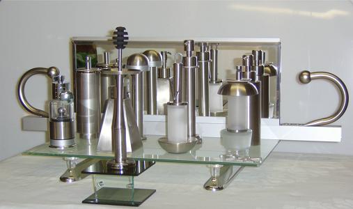 Augen verchromte Behältnisse mit Gestell verbunden /