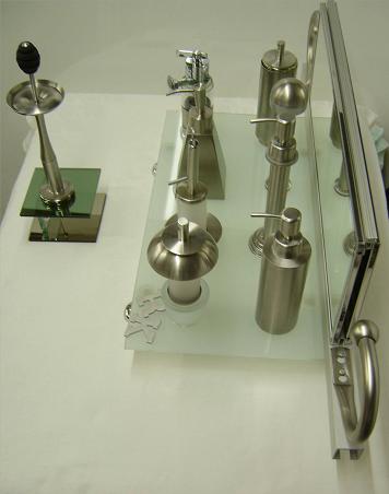 Kopf besteht aus:Chromformblech hochglanz poliert mit Edelstahlhalterung verbunden
