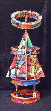 Die Skulptur wurde von mir aus vorgefertigten Holzelementen, sowie Tischlerplatten