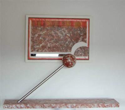 Trompe-l'oeil : Auf den Marmorsockel schlägt wie ein Meteor eine Marmorkugel ein und bleibt nahezu eingefroren.