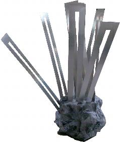 Es entspringt aus Holz und wird wie durch eine Metamorphose zu Spiralenförmigen Stahl,