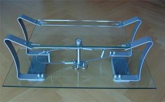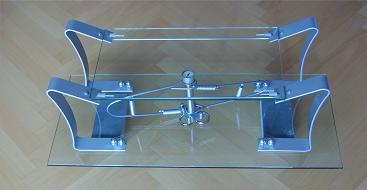 versehen, gelagert auf 3 Rundscheiben mit Grundglasplatte