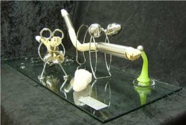 großes Reptil: verchromtes Drahtgestell selbsttragend /